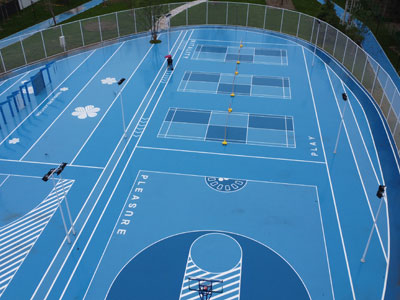硅PU球場材料。是一種具有多功能運動性和施工優..